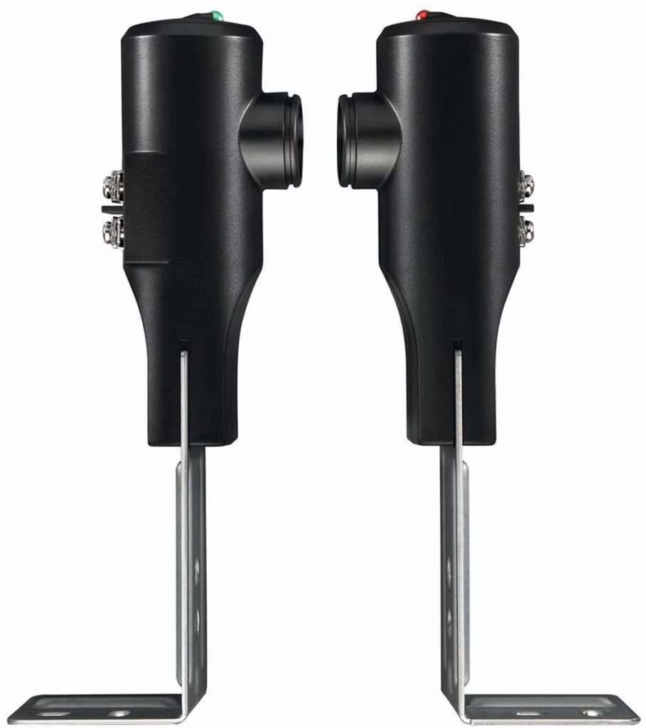 How they work: When the infrared beam is unbroken (both sensors aligned and clear), the green LED glows steady, and the door operates normally. When something breaks the beam—a person, pet, car, or even a spider web—the door immediately stops or reverses to prevent injury or damage.